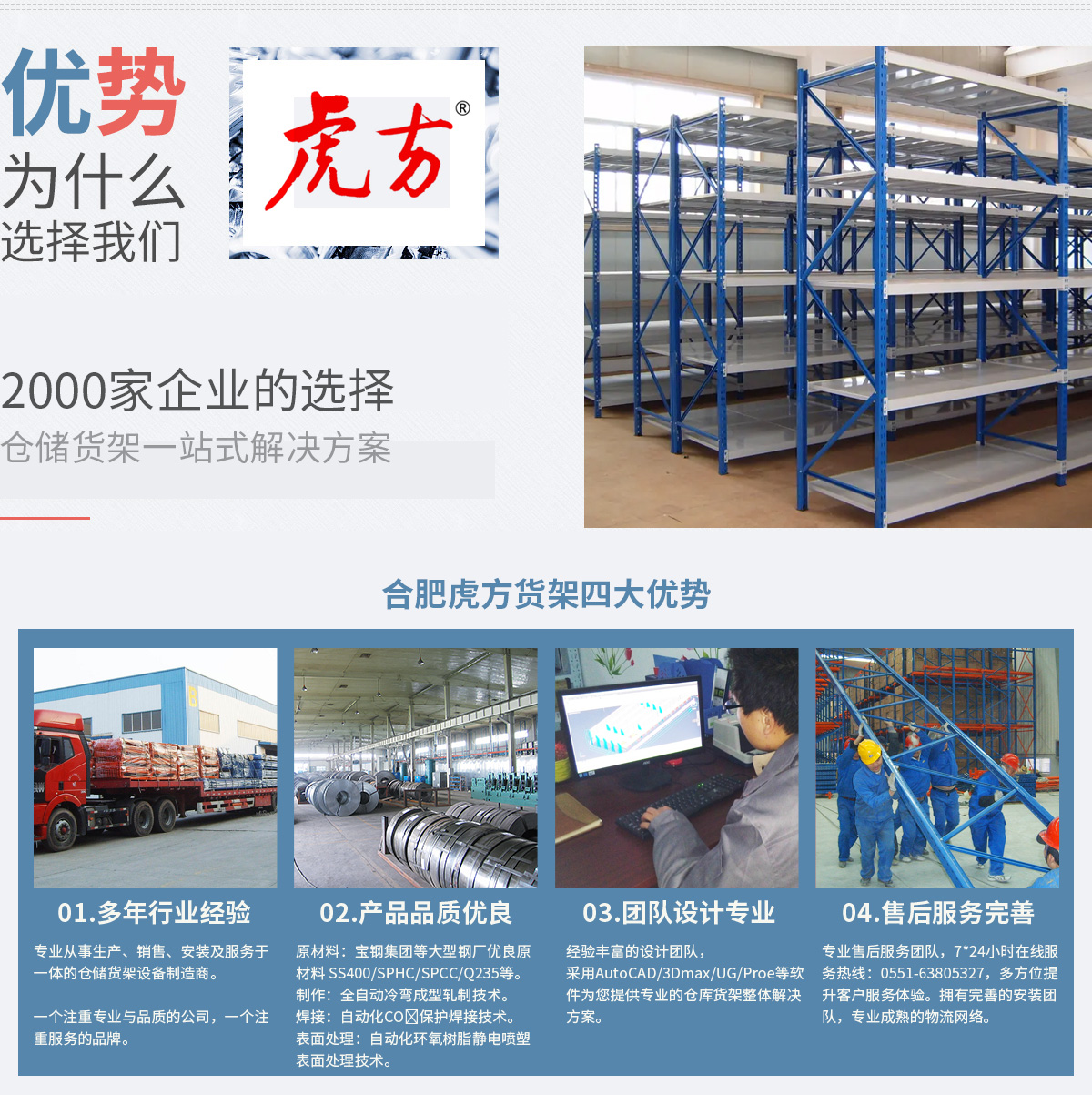 合肥虎方貨架有限公司從事經營倉儲貨架、物流周轉及搬運設備、倉庫管理系統等相關產品的生產、銷售、設計、安裝及采購集成服務。 公司主要產品:貨位式貨架、倉儲重型貨架、擱板式貨架、閣樓式貨架、駛入式貨架、鋼平臺貨架、穿梭式...